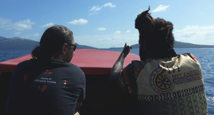 Andrei (Sussol developer) and Narsong (consultant) heading towards the sunset in Vanuatu